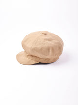 かぶりやすいシンプルなキャスケット。ややハリがありますが、表情の出る柔らかい生地感です。