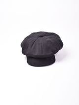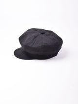 かぶりやすいシンプルなキャスケット。ややハリがありますが、表情の出る柔らかい生地感です。