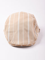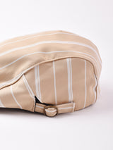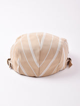 シンプルな服装のポイントに、使いやすいストライプ柄ハンチング。サイドのアジャスターがアクセントになっています。さらっとした生地感で、ベージュ、オリーブブラックの3色をご用意しました。