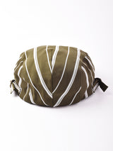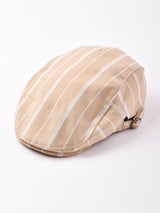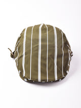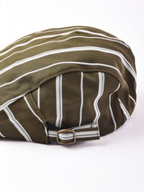 シンプルな服装のポイントに、使いやすいストライプ柄ハンチング。サイドのアジャスターがアクセントになっています。さらっとした生地感で、ベージュ、オリーブブラックの3色をご用意しました。