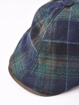 秋冬らしいチェック柄のハンチング帽。ブリムとストラップはフェイクレザー生地になっています。