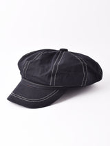 シンプルで使いやすい、ツイルコットン生地のキャスケット帽。ホワイトのステッチがアクセントになっています。型崩れしにくく、オールシーズン活躍する一点です。