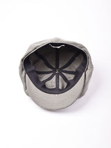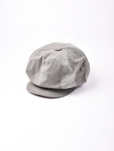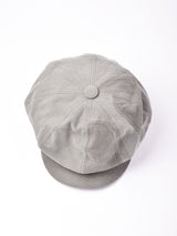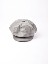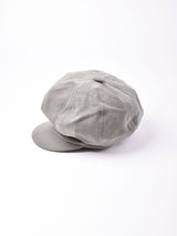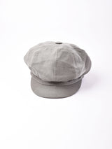 ヴィンテージファブリックを使ってリメイクしたキャスケット。色みはグレーがかった暗めのブラウン。硬めのダック地で、生地のアタリやスレなどヴィンテージファブリックならではの味を楽しめる一点です。