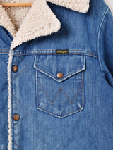 ラングラーのデニムジャケット。黒タグの中に筆記体でロゴが刺繍されていることから、おそらく70年代頃のものと思われます。肉厚な生地感の裏ボア仕様で、冬の防寒アウターとして活躍します。
