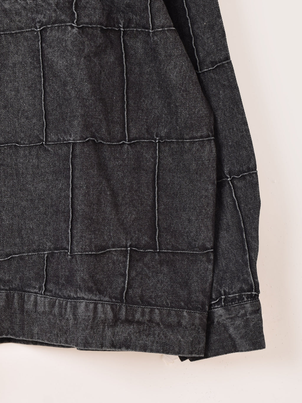 パッチワーク風に織り上げられたデニム生地のジャケット。エッジの効いたデザインに、ゆとりを持たせたオーバーなサイズ感でこなれた雰囲気に仕上げてくれます。ユニセックスでも着用できる一着です。