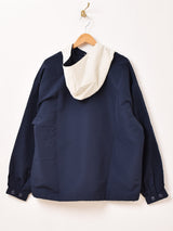 2色使いでコーディネートに使い勝手の良い、フード付きアノラックジャケット。裾はドローコードで調節が可能、フロントにはファスナーポケットが備わっています。ライトな生地感もタウンユースしやすい一着です。