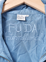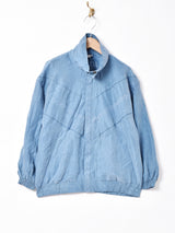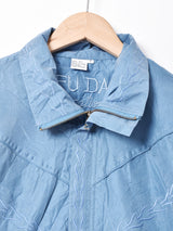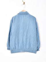 刺繍やキルティングのデザインが洒落ているブルゾン。シルクらしいさらりとした滑らかな質感とくすみブルーが魅力的。裏地付きの軽やかな生地です。