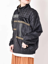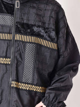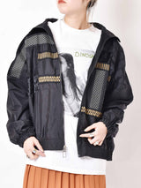 ナイロン×ポリエステルのシャリっとした生地感がトレンド感あるナイロンジャケット。ブラックで統一したカラーリングに、異素材ミックスのパッチワークが唯一無二。90年代頃のものかと思いますが、このあたりの年代の面白い古着はやはり一点ものの魅力が詰まっているのではないでしょうか。