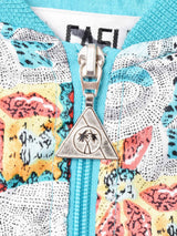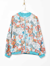 ライトなカラーリングが爽やかな印象の総柄ブルゾン。薄手のポリエステル素材に、ポリ×コットンの裏地が付きます。
