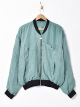 胸元のポケットのデザインが魅力的なシルクジャケット。表面はシルクらしくさらりと、裏地はずっしりとしています。