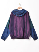 古着らしいカラー切り替えデザインが目を惹くナイロンジャケット。裏地はなく薄くて軽い生地感です。