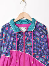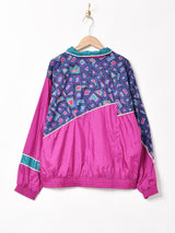 ポップな柄がにぎやかなナイロンジャケット。ポリエステルとコットン素材の裏地付きで防寒性も兼ね備えた一着です。