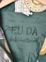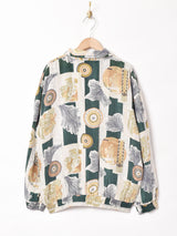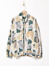 ムード満点な総柄が魅力のシルクジャケット。ナイロンの裏地付きで軽やかながら防寒性も兼ね備えた一着です。