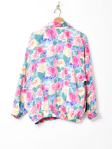 華やかでハッピーな気持ちになれる総柄ジャケット。おそらくシルク素材で肌触りのよい一着です。