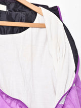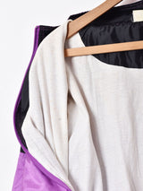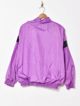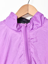 パキッとしたパープルが目を惹くスポーティーなデザインのジャケット。コットンの裏地が付いたシャカシャカとした生地感です。