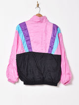 ポップな切替デザインが魅力のナイロンブルゾン。コットン素材の裏地付きで防寒性にも優れた一着です。