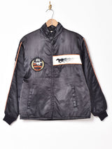 レーシングジャケットにしては控えめなデザインで使いやすいブルゾン。キルティングの裏地で防性にもすぐれた一着です。