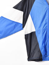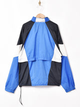 襟元にフードが内蔵された、機能性に優れたウィンドブレーカー。着こなしに取り入れやすそうな洒落た色使いが◎。おそらくナイロン素材の軽やかな一着です。