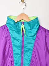 グリーンとパープルの切り替えデザインが映える一着。薄手の生地感です。