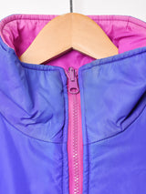 ビビットなパープルとピンクのカラーリングが印象的な、リバーシブル仕様の一着。程よい厚みの生地感です。