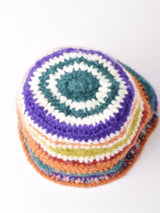 カラフルなボーダー柄が目を惹くワッチキャップ。季節感あふれる毛糸生地で、あたたかみを感じられる一点です。