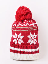 【3色展開】雪結晶 ポンポン付き ニットキャップ