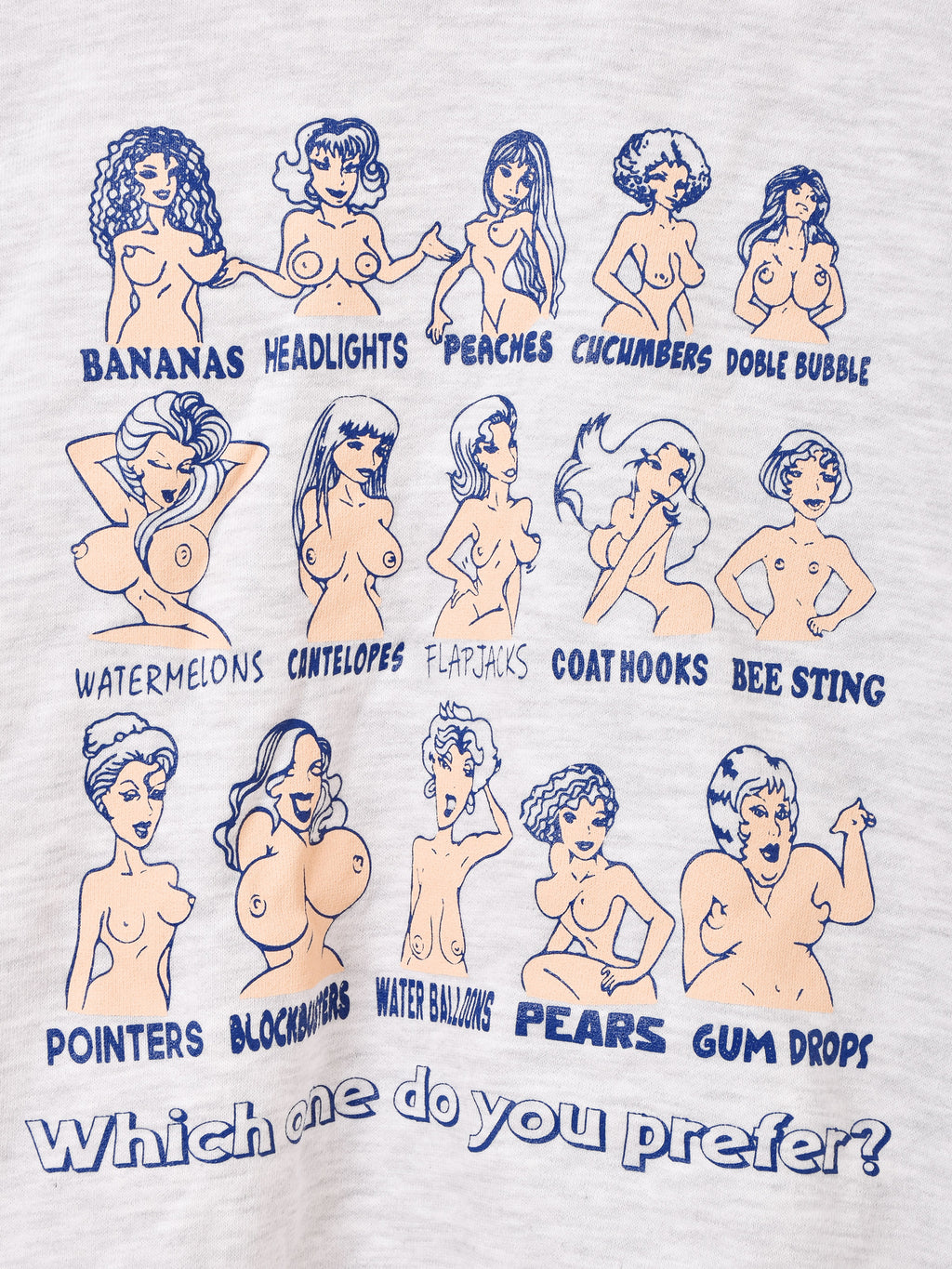 セクシーなプリントに目を奪われるスウェット。スリーブにもプリントがあり、アクセントになる一着です。裏起毛はなく、程よい厚みでオールシーズン活躍します。