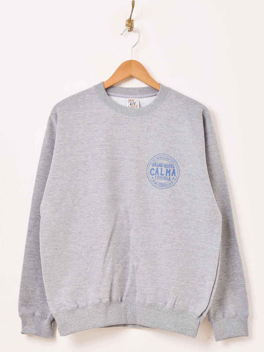 古着と相性の良さそうな、両面プリントのスウェットシャツ。裏起毛はなく、程よい厚みでオールシーズン活躍します。