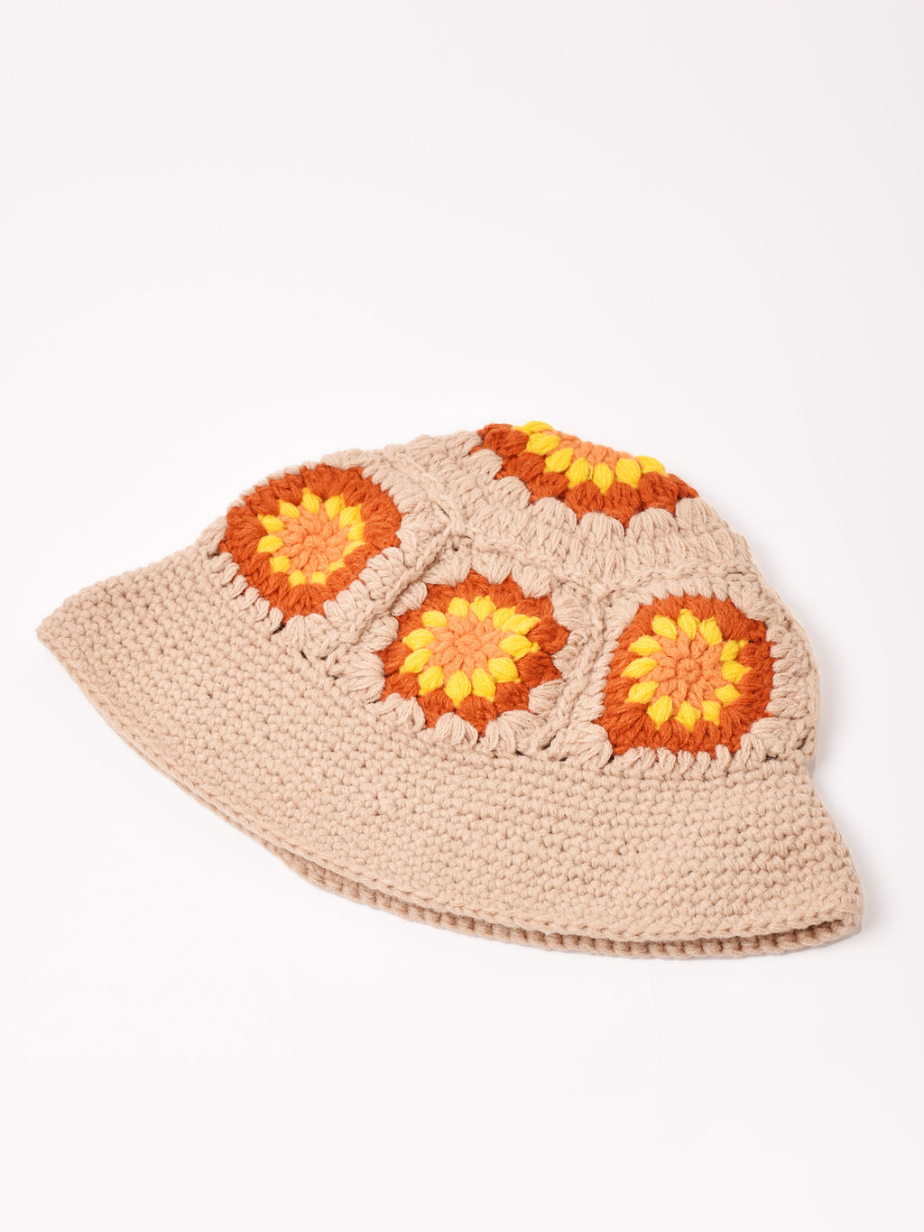 おしゃれなグラニー編みの鐘型ニットハット。厚みがあり、秋冬らしい生地感です。