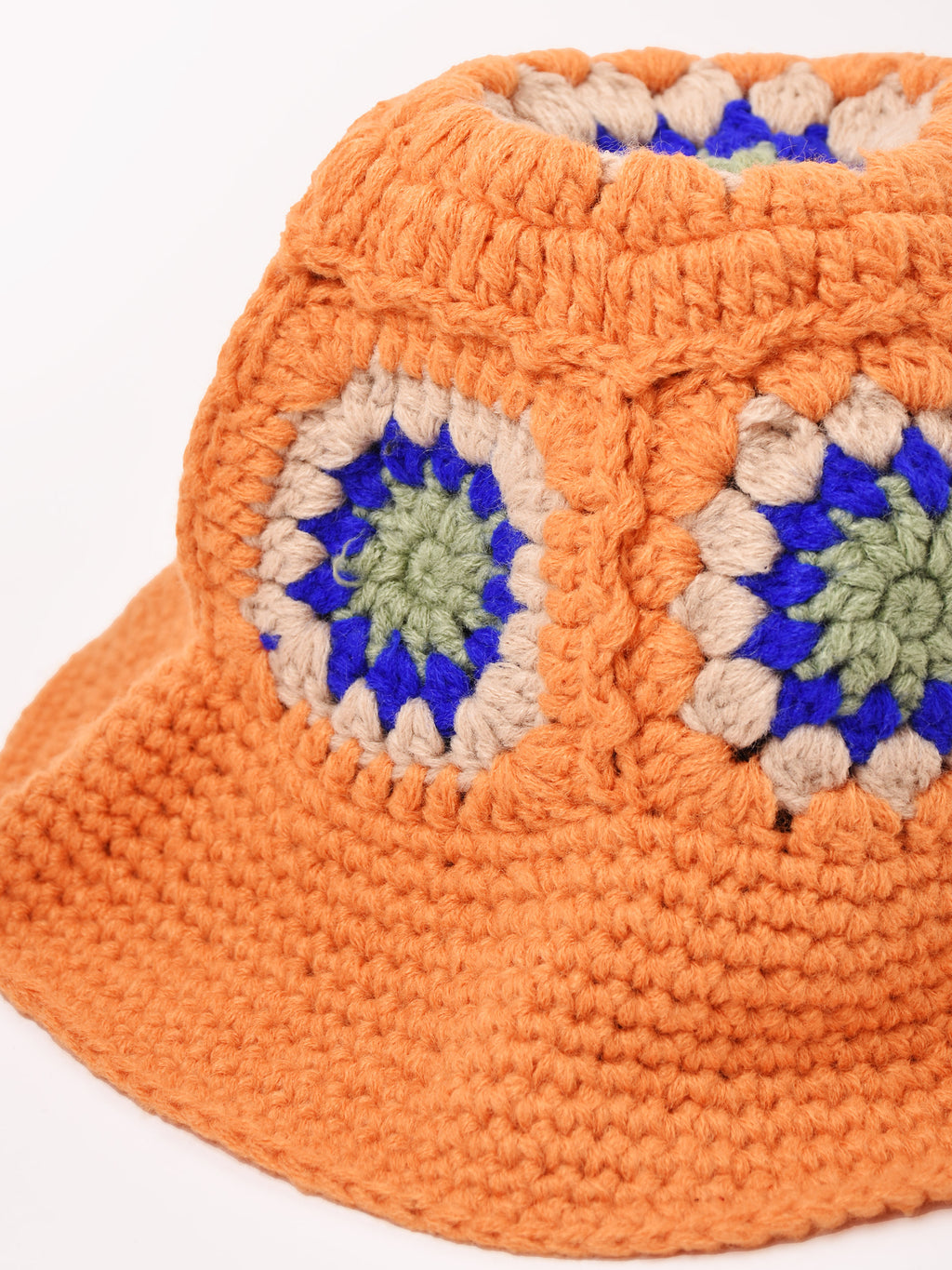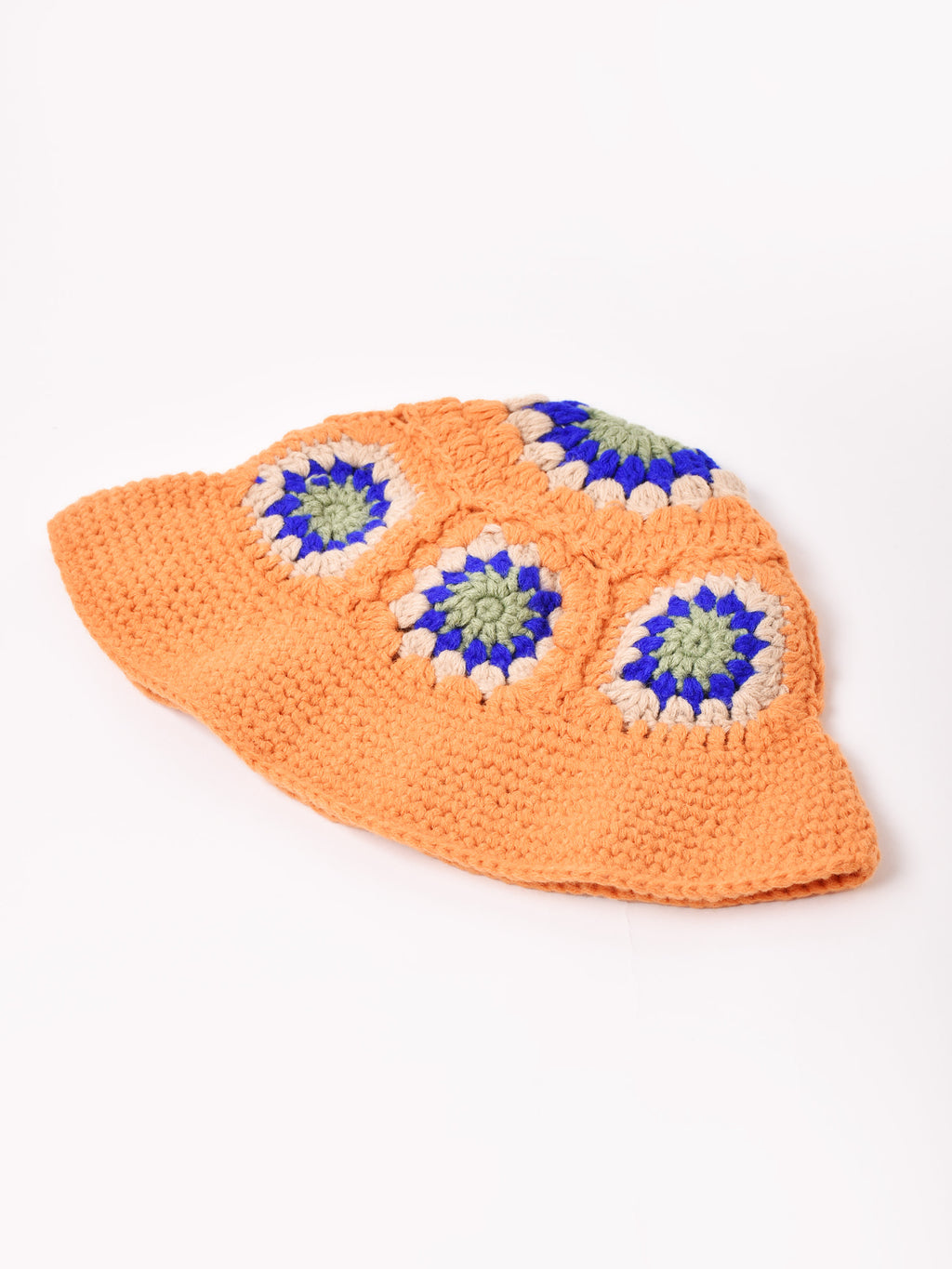 おしゃれなグラニー編みの鐘型ニットハット。厚みがあり、秋冬らしい生地感です。