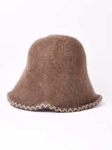 目元が隠れるようなブリムがポイントの釣り鐘ハット。ウール混でふんわりあたたかみの溢れる一着です。