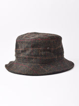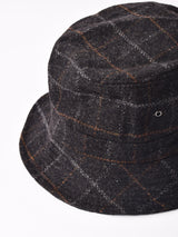 秋冬らしいチェックのウール混バケハ。つばにワイヤーが入っているので自由に変形できます。