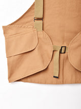 ざっくりと大きめなサイズ感のハンティングベスト。背中側にはマチ付きの大きなゲームポケットが付いており収納性も抜群。肩とウエストはストラップ仕様で、スウェットやシャツの上からはもちろん、ウインターシーズンには厚手のジャケットやコートの上からでも着用していただけます。