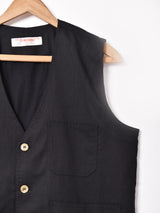 様々なスタイルのレイヤードに活躍する、シンプルなデザインが魅力のベスト。爽やかなコットンリネン素材です。