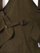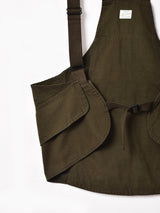 大きなポケット付きで機能性に優れたディテールが魅力のハンティングベスト。長さ調節可能なアジャスター式の肩紐がポイント。しっかりとしたタフなコットン生地で、シーズンレスに活躍するタウンユースアイテムです。