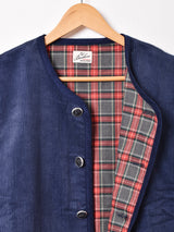 秋冬のコーディネートの幅が広がるコーデュロイベスト。トナカイをデザインしたボタンとチェックの裏地がポイント。しっかりとしたコットン生地です。