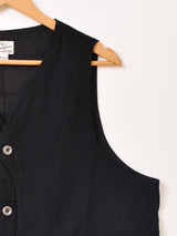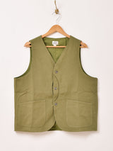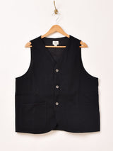 フロントに半月型のポケット、通称”ハーフムーンポケット”が備わったベスト。ヘリンボーンツイルのしっかりとした生地感で、風合いも良い一着です。