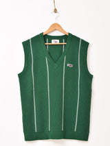 シンプルなストライプに、スカンクのワンポイント刺繍が目を惹くスポーティなニットベスト。サラッとした薄手の生地感で、オールシーズン着回せます。フリーサイズで着用いただけます。