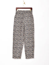 ネイビー地にカラフルなペイズリー柄が映えるイージーパンツ。オールコットンのハリのある生地でボディに安定感があり、軽くテーパードされたシルエットが綺麗。ウエストはゴム仕様でリラックススタイルにもおすすめのアイテムです。