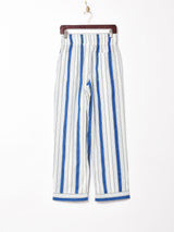 爽やかなカラーリングのストライプが魅力的なパジャマパンツ。ウエストゴムなのでリラックススタイルにピッタリで、同布のシャツと合わせてセットアップを楽しめるのもポイント◎コットン素材の軽やかな生地感です。
