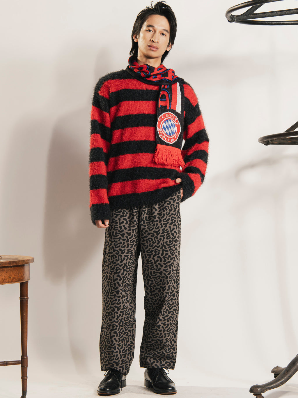 インパクトのあるパターンが目を惹く、バクテリア迷彩柄をサンプリングしたパンツ。コーディネートのスパイスになりそうな一着です。