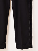 サイドのベロアとステッチが洒落っ気のある、ロカビリーパンツ。スタイリッシュなハイウエストに、センタープレスとタック入りで綺麗な形を保ちつつ、やや太めのルーズなシルエットが50’sスタイルを彷彿させてくれる一着です。