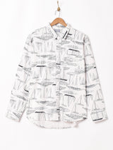 船の総柄が爽やかな印象の長袖シャツ。ハリのある程よい厚みのコットン素材です。