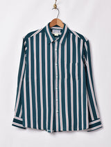一見シンプルに見えますが、不規則なストライプ柄が表情のあるシャツ。使いやすいカラーリングでコーディネートしやすいかと思います。柔らかく薄い生地感です。