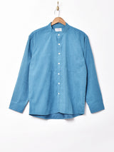 滑らかでしっとりとしたピーチスキン生地が魅力的なスタンドカラーシャツ。薄手ながらもしっかりとした生地感です。