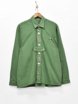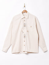 リネン混のキナリの様な風合いとチロリアン刺繍がマッチしているシャツ。混紡素材で、程よい厚みの生地感です。アイボリー、グリーン、ブラックの3色をご用意しました。