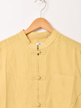 薄手のピーチスキン生地を使用した長袖チャイナシャツ。マットな素材感とチャイナボタンのアクセントが洒落たアイテムです。