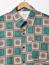 鮮やかなグリーンが存在感を放つシャツ。オリエンタルなムード漂うパターンは、コーディネートのアクセントに◎。薄手のポリエステル生地で、さらっとした軽やかな一枚です。
