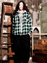 配色に雰囲気のあるシャドウチェックシャツ。軽い質感なのでさらっと羽織れます。