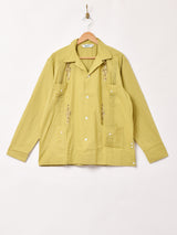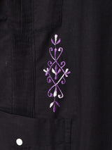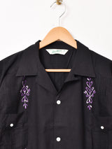 ピンタックに刺繍が飾られ目を惹くグアヤベラシャツ。厚みのある、オールコットン生地です。
